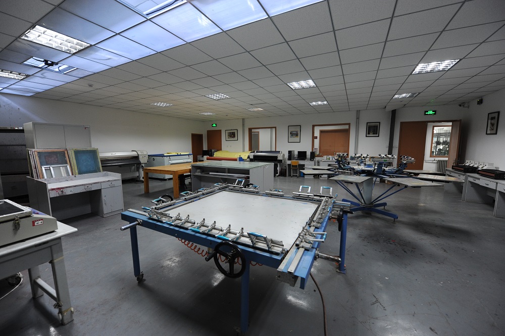 丝网印实训车间是我校计算机广告专业所属实训车间之一,是网版制版工两种培训鉴定场所之一,主要用于学习制作丝网印制品的实操教学场地。丝网印刷不仅适应一般的纸张印刷,而且适应性非常广泛。例如:陶瓷、玻璃、印刷线路板等。根据承印物的质地不同,印刷时就不尽相同所以通常人们按承印物不同划分为:纸张类印刷、塑料类印刷、陶瓷类印刷、玻璃类印刷、线路板印刷、金属类印刷、纺织类印刷等几大类。我校丝网印车间面积近百平米,同时配备大中小型各式专业设备,还拥有一支软件先进创新能力强并富于教学经验的教师团队。带领学生创作出高水平作品,培养出符合市场需求的学生。