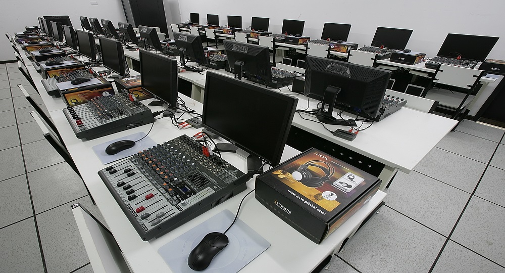 音响调音员实训场地共有二间实训室,各类实训设备148台套,实训工位90个,可以完成调音台、功放与主扬声器、监听扬声器及返送扬声器的连接、调音台的使用、中、小型音响系统的配置与调整、设备故障的判断与维护、系统故障的判断与维护、小型演出场所调音方法等技能实训课题。