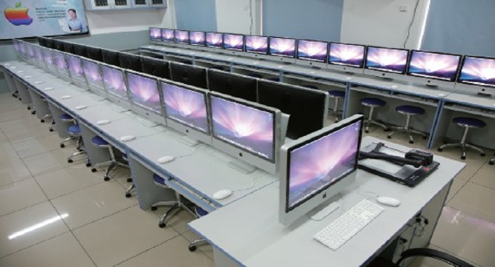 电脑美术设计实训室全部配备了苹果一体机,将显示屏、处理器、图形处理器、存储设备、内存和更多功能整合到一个简洁、时尚的外壳之中。将全新 iMac 的前和后接合在一起,iMac 的显示屏呈现出鲜艳生动、栩栩如生的色彩。