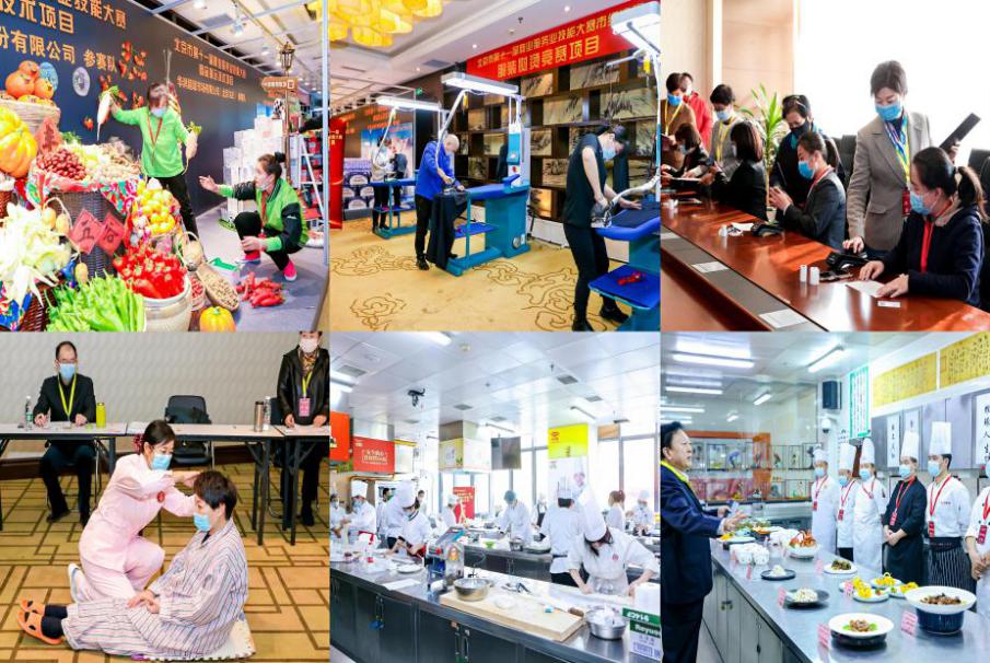 本届市级决赛共有商品展示技术、收银、西式烹调师(西餐)、中式面点师、烘焙、餐厅服务员、中式烹调师、茶艺师、美发师、美容师、眼镜验光员、健康照护、育婴员、制冷空调系统安装维修工、服装熨烫、国际时尚搭配师、外卖运营规划师、医药商品购销员、金牌店长、外贸业务员等20个竞赛项目,其中有9个项目是全国职业技能大赛竞赛项目。